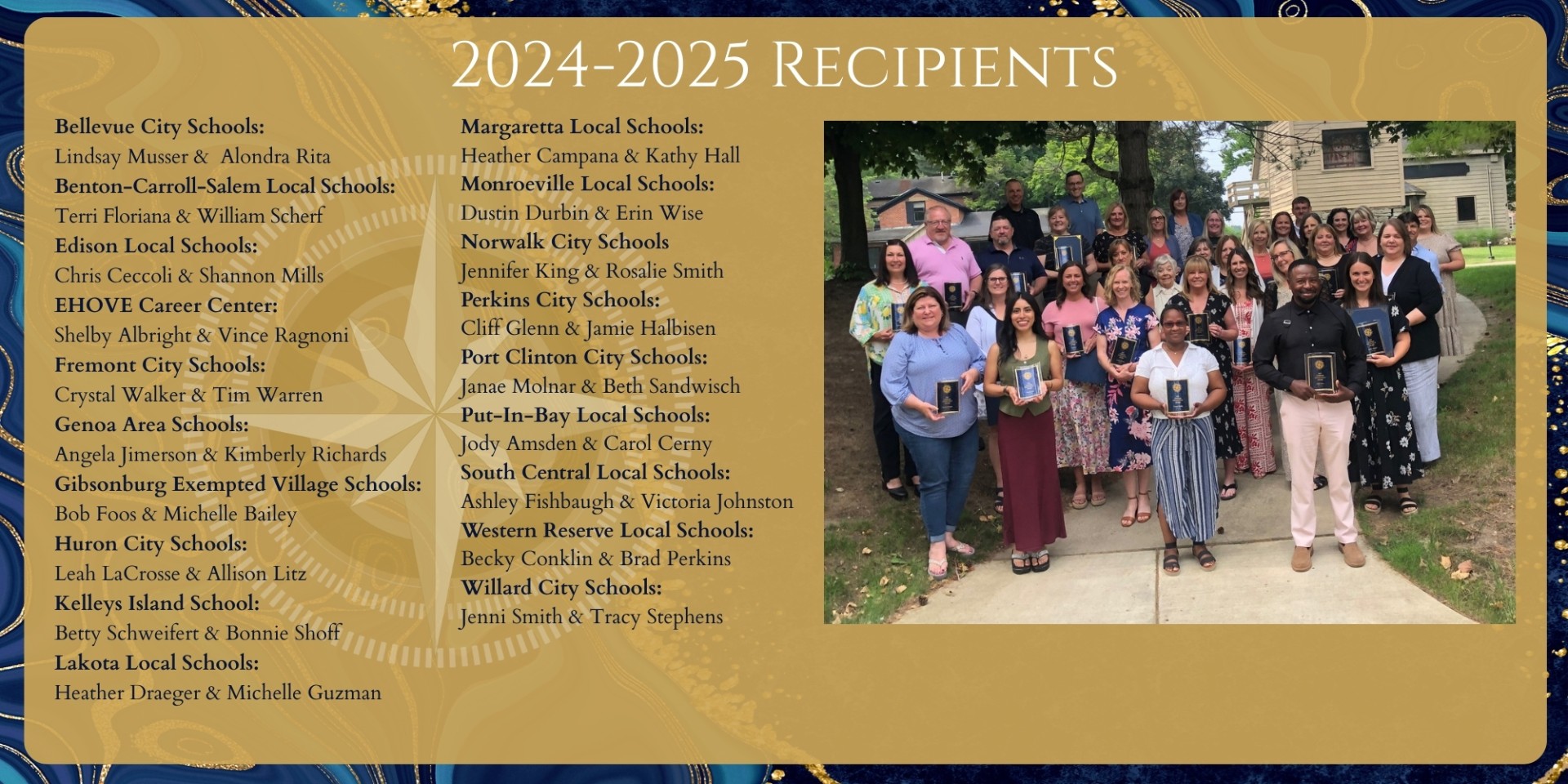 The Compass of Excellence Awards honors employees from the 26 NPESC member districts who go above and beyond in their service to students, schools, and communities. Each superintendent chooses two employees from their district who are making a significant difference and a positive impact to those around them.  Congratulations to all our award recipients.