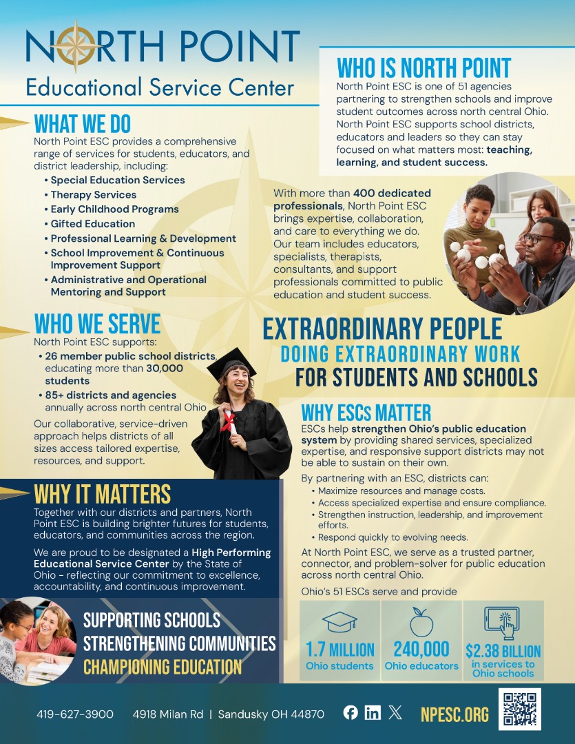 At North Point Educational Service Center (NPESC), we are dedicated to Championing Education — for every child, classroom, and school district we serve.